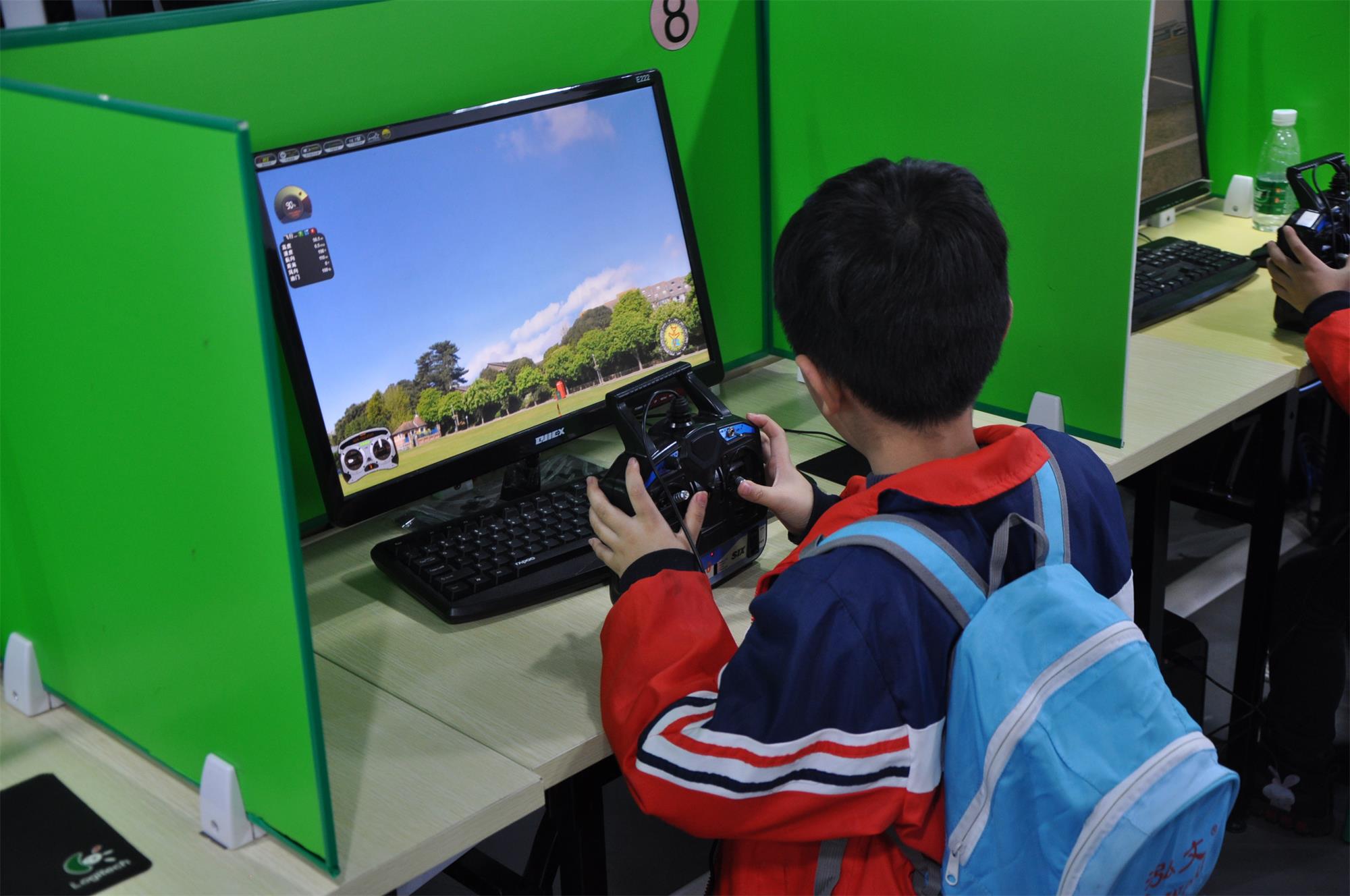 同學(xué)們操控?zé)o人機(jī)模擬飛行